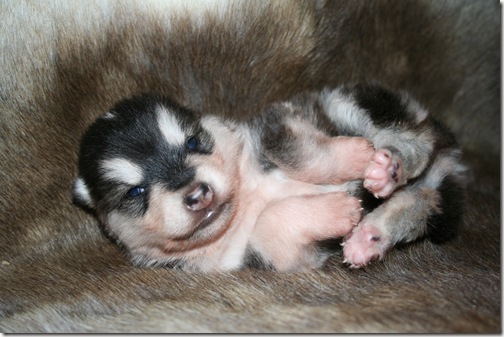 Angel and Kavik have three new bouncing baby girls! Their eyes are now open and they’re starting to crawl around and play and eat meat like little champs. Two of them are pure white, just like their mother, and the other pup looks more like dear ol’ dad.